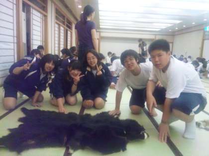 ガイドさんが動物の毛皮を触らせてくださいました。