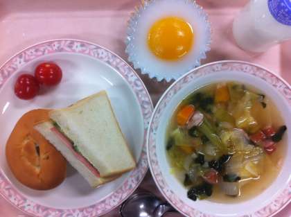 今日は、新玉ねぎ、新じゃが、春キャベツの春野菜がたっぷり入ったポトフでした。野菜がたくさん入り大きな釜で作るので、いろいろなうまみが出たスープになっています。