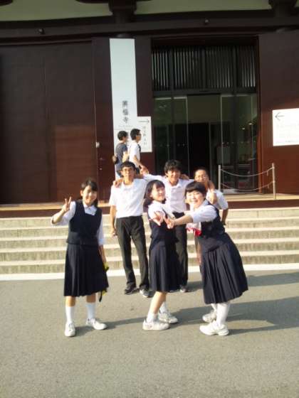 奈良の班行動中、興福寺の国宝館前の写真です。