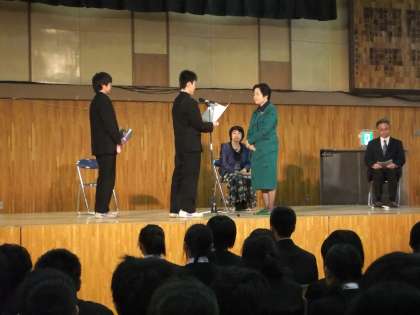 お二人の先生から、それぞれの思い出についてお話しいただくなかで、生徒には駒込中生として誇りと自信を持つようにとのエールをいただきました。ありがとうございました。