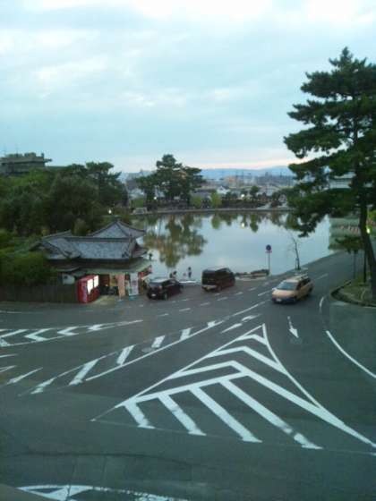 宿の窓から、夕暮れの奈良。