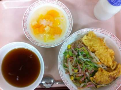 五目冷やしうどん、天ぷら(いか・かぼちゃ)、七夕ポンチ、牛乳