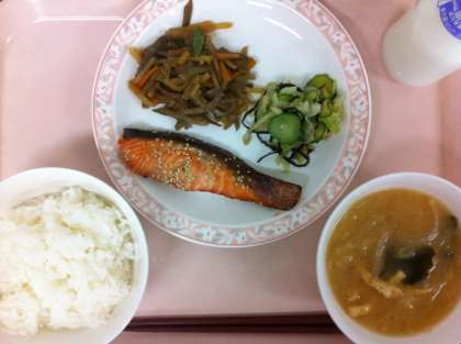 今日は、和食のメニューでした。きんぴらには、じゃがいもが入っています。じゃがいもが崩れないように、1度下ゆでしてから歯ごたえを残すように炒めています。