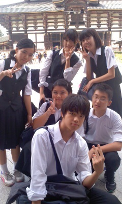 奈良公園班行動中です。東大寺大仏殿前での写真です。