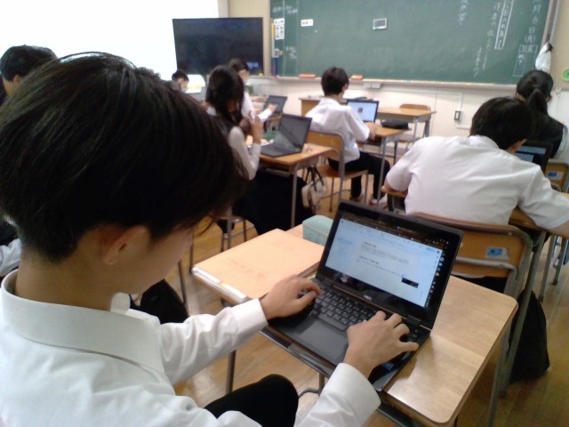2年生の道徳の授業の様子です。本校は、学年の教員全員が順番に道徳の授業を行っています。A組は「自然愛護」について、B組は「礼儀」についてみんなで考えていました。まずは自分一人で考えてから、班で意見交換をして、更に自分の考えを深めていました。ICT機器をスムーズに使いこなせるようになってきました。
