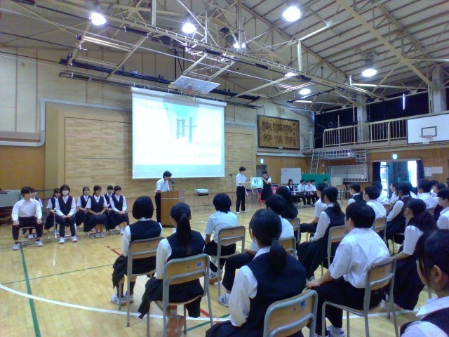 今日は、後期の生徒総会を行いました。新しい生徒会組織のもと、2年生が委員長となった各委員会が活動方針や活動計画・内容、みんなに呼びかけたいことを確認し、各クラスからの質問等に答えていました。新生徒会のスローガンは、「叶」です。「充実した中学校生活を生徒会で叶える」という意味だそうです。一人一人が意識して行動して、よりよい学校をみんなで作っていきましょう。