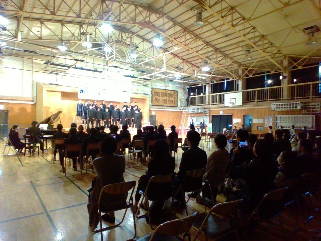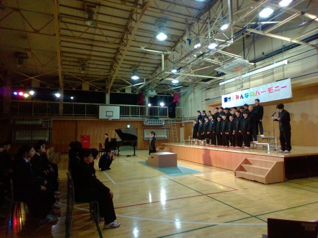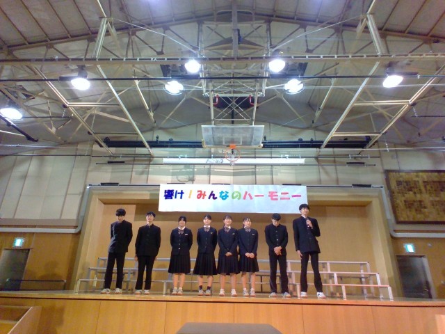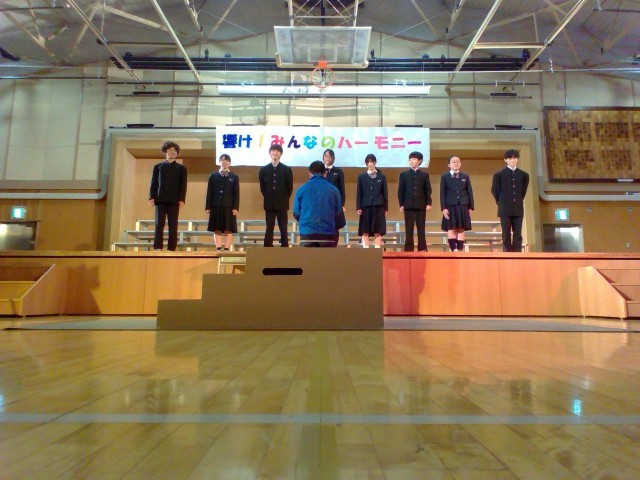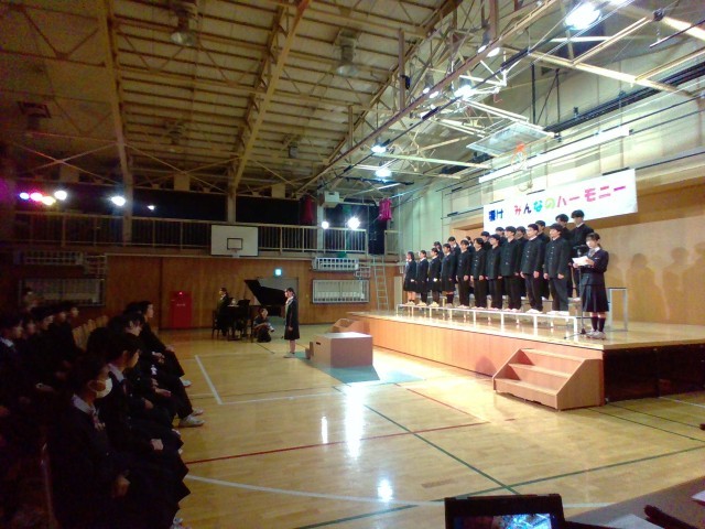 今週の駒込中学校 10月31日(金) 最後の発表は、2年生です。まずは、学年主任のウォーミングアップで気持ちをほぐし、合唱に気持ちをを切り替えてからの発表会でした。他の学年と比べるとクラスの人数は少ないですが、素敵なハーモニーを響かせてくれました。指揮者や伴奏者の表彰の後に、学年教員から実行委員へのありがとうの気持ちがこもった感謝状がおくられ、とてもあたたかい雰囲気に包まれました。実行委員一人ひとりからのメッセージの最後には、参観してくださった保護者の方への感謝の気持ちを学年全員で伝えていました。 平日の開催にも関わらず、たくさんの保護者にご参観いただき、本当にありがとうございました。