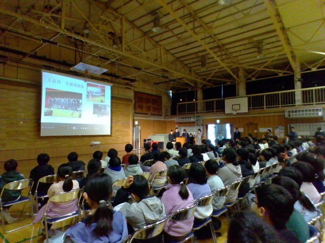 本校では、昨年度から能代東中学校と交流を行っています。今年度は、12月5日(金)能代東中学校生徒会と本校生徒会がオンラインで交流をおこないました。お互いの学校の特色や活動について紹介しました。これからの活動の参考となる内容を伝え合うことができました。