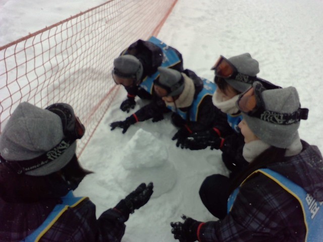 昼食後は、ゲレンデに出て雪合戦や雪だるまをつくって遊びました。生徒も先生も一緒になって楽しみました。