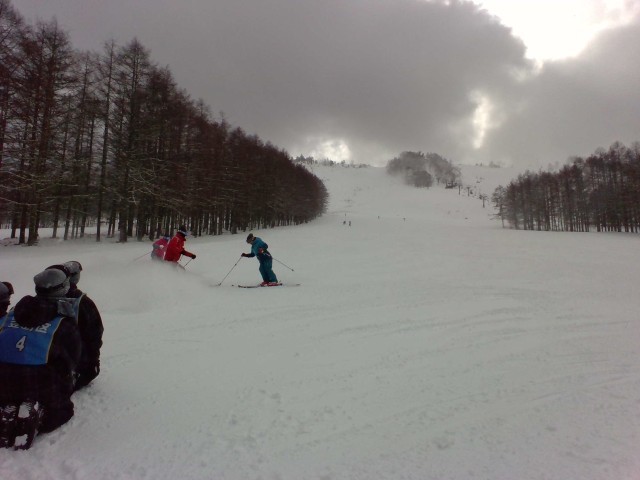 リフトにも少しづつ慣れてきました。技術に応じて、いろいろなコースを滑ります。