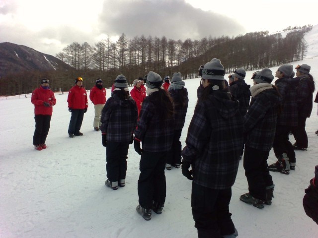 スキースクールの代表の方からお話をいただき、3日間お世話になったインストラクターさんへ感謝の言葉を伝えました。