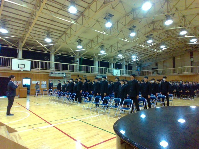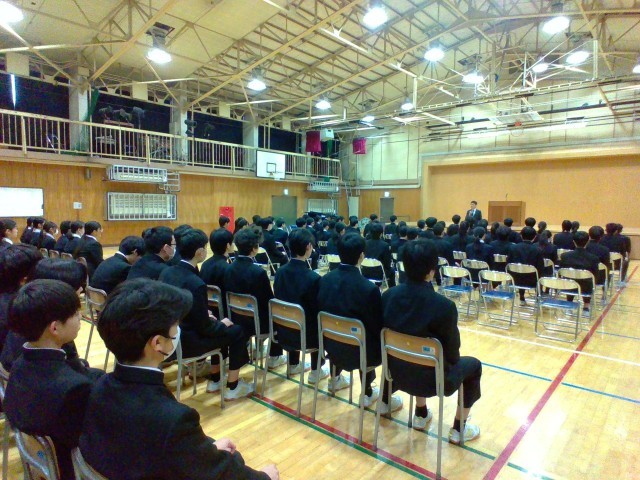 集中して取組んでいました。試験終了後、ホッとしている時に避難訓練の突然の放送。生徒たちは、放送の指示に従い落ち着いて行動することができました。