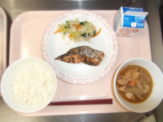 果物は、旬の「柿」です。みかんよりもビタミンCを多く含み、風邪予防に効果があります。