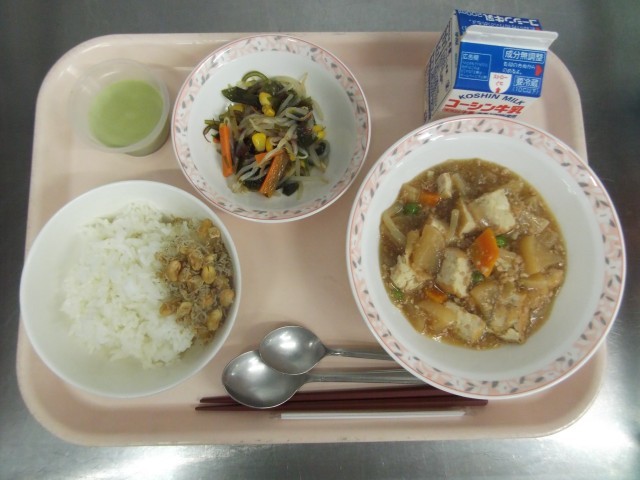 明日、9月30日は開校記念日です。駒込中学校は、74周年を迎えます。給食では、お祝い献立を用意しました。