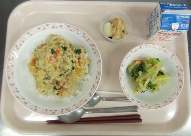 今日の人参、玉ねぎ、じゃがいも、さつまいもは有機野菜を使用しました。有機野菜とは、化学合成された肥料や農薬を使わずに、有機物由来の肥料などを使って栽培された野菜です。12月8日「有機野菜の日」にちなみ、取り入れました。