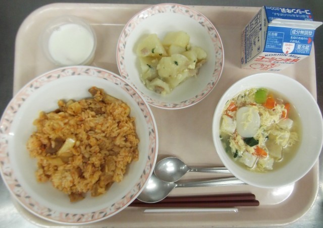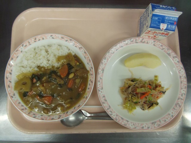 今日の人参、玉ねぎ、じゃがいも、さつまいもは有機野菜を使用しました。有機野菜とは、化学合成された肥料や農薬を使わずに、有機物由来の肥料などを使って栽培された野菜です。12月8日「有機野菜の日」にちなみ、取り入れました。