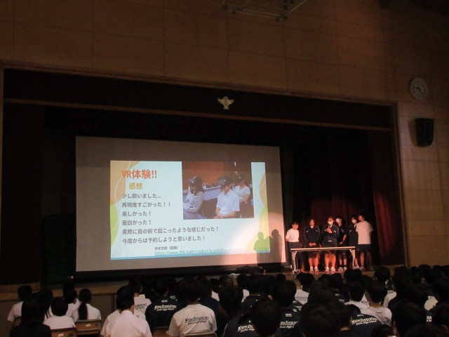 1年生は横浜の「海の学習」を、2年生は「都内めぐり」を、それぞれが学んだことをスライドにまとめ、体育館で発表しました。