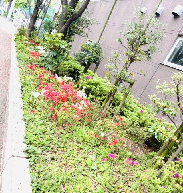 花壇はツツジで満開になりつつあります。