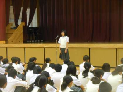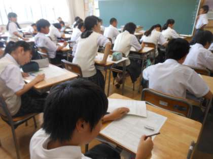 7月4日。今日は定期考査の点数や学年全体の得点分布表などが貼付された「学習の記録」が配布されました。得点や順位に一喜一憂するのではなく、試験に向けた取り組み、授業中の意欲、日頃の家庭学習などを振り返り、その反省を今後に生かせるようにしていきましょう。更に、一学期の学校生活の振り返りシートの記入も行いました。さあ、夏休みまでいよいよ二週間です。
