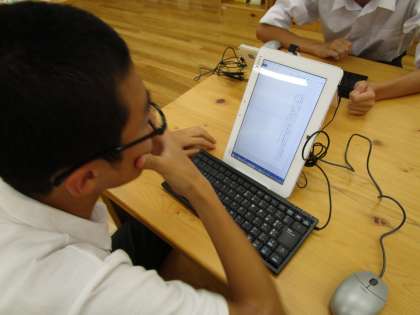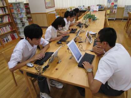 タブレットパソコンに向かって、仲良く、小説を書いています。