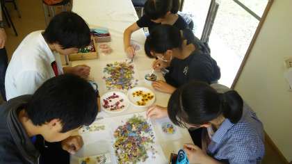 癒しの家では、石を使ってブレスレットのようなものを作っています。