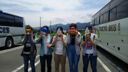 各自の体験が終わってバスに戻ってきました。天気の方も、すっかりと晴れ間が広がり、暑いくらいです。