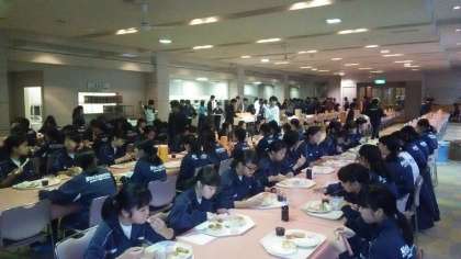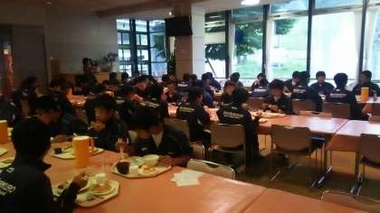 朝食もバイキングになっています。生徒の様子を見ると、パン派が8割くらいのようです。また、しっかり食べられる人と、朝はあまり食べられない人に分かれていました。