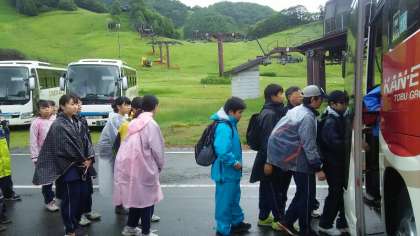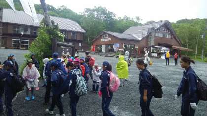 予定通りにホテルを出発して、鳩待峠に着きました。いよいよ尾瀬の散策が始まります。雨は、今、あがってます。