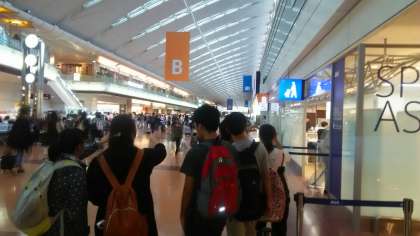 第二ターミナルの展望デッキで記念写真を撮り、いよいよ班行動です。
