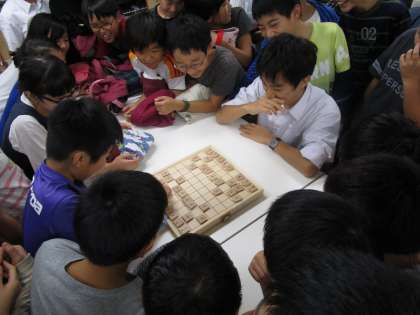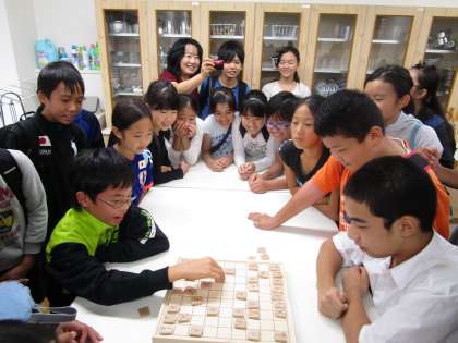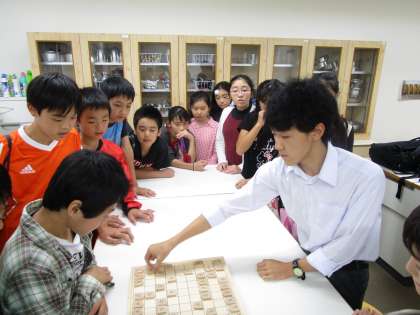 小学生体験授業で将棋部の代表と小学生が将棋をしました。