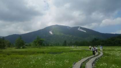 雪が残っている方が至仏山。もう一方は燧ヶ岳。