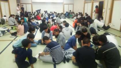 楽しいレクの後は、移動教室の締めくくりをする班会議、班長会議です。明日の最終日に向け、しっかりと反省をして下さい。