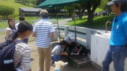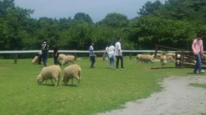 ショーの後はふれあいの時間があり、班毎にバーベキュー場に向かいます。