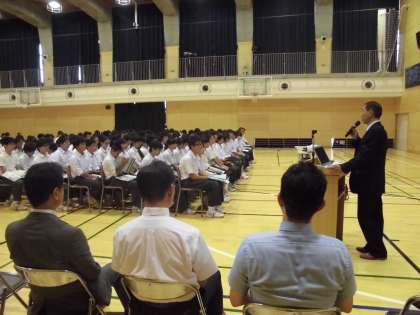 進路説明会には4校の高校の先生方をお招きしました。高校について、入試について、新路選択について、そして学ぶということについてなどのお話を保護者の方々と共に伺いました。直に高校の先生方の声を聞く貴重な時間でした。今後の進路選択に生かしていきましょう。