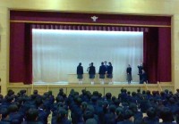 写真1:バスケットボール部。写真2:試験勉強中。写真3:図書室で司書の先生と本について語り合う。