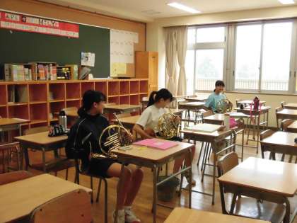 各教室で練習する吹奏楽部。