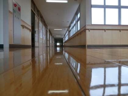 閉庁日期間中の暑い中、用務主事さんが各階の廊下にワックスをかけてくださいました。