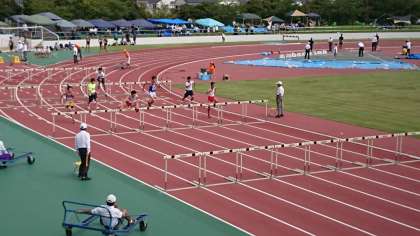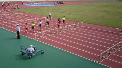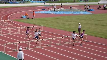 昨年度は女子 優勝、男子 準優勝でした。ハードル走を皮切りに、競技が始まりました。