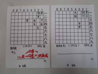 今日の一枚目の写真は、左側が前回の詰将棋の解答で、右側が本日の詰将棋の問題です。