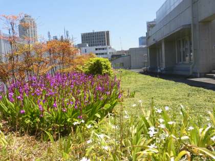 春らしい一日でした。春の日差しを浴びて屋上にはシランが、学校裏にはツツジが花を咲かせています。