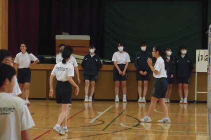 受験勉強の疲れは、体育授業で体を動かして解消しましょう。今日は男女ともにバレーボールでした。