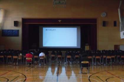 1年生は体育館で進路学習を行いました。試験への取り組み、高校について、入試について、日頃の学習や生活を見直していく必要性など、学年全体の指導が行われました。