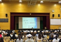 3年生、球技大会の様子。写真は女子のバレーボールとサッカーの試合です。