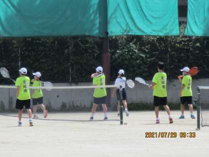 素振り、レシーブ練習と、夏の日差しの下で汗を流しています。