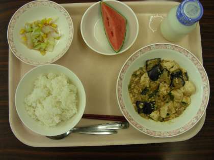 7月11日(月)の給食です。梅雨が明け、暑さが続いています。冷たい物の取りすぎで健康を損ねないようにしましょう。