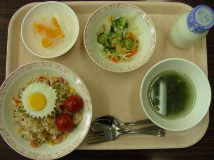 ナシゴレンは、インドネシアのチャーハンです。イスラム教徒の多い国なので牛肉か鶏肉、たまねぎ、唐辛子等を油で炒めたご飯に加えます。生野菜や目玉焼を添えるのが一般的です。モロヘイヤは、今が旬の食材です。モロヘイヤは、カロテンが100gに1万μg(小松菜3100μg)とカルシウムが豊富な優秀なお野菜です。