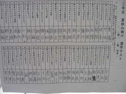 9月4日(水)、2年生の廊下には「夏休み明け 漢字テスト」が掲示されています。夏休み中に学習した成果を確認するために、夏休み明けにテストをすることがよくあります。2年生・国語に限らず、それぞれの学年・教科でテストが行われます。しっかり学習しましょう。