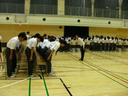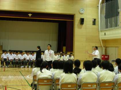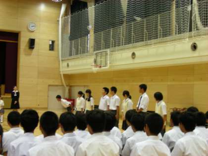 9月4日(水)、2年生は5時間目に「接遇指導」を行いました。2年生は9月24日〜27日に「職場体験」に出かけます。それぞれの事業所で、将来の職業に対するご指導をいただきます。今日は、その事前学習として「ビックカメラ」の人事部長の佐々木様をはじめ3名の方にご来校いただき、職場に行く心構えや、あいさつの仕方などについて、ご指導いただきました。
