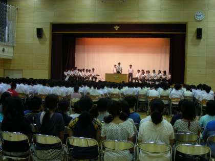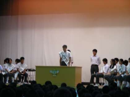 9月5日(木)、5・6校時に「生徒会役員立会演説会」が行われ、その後、選挙が行われました。2年生・1年生による役員立候補者・応援演説者が自分の意見をしっかり述べていました。また、話を聞いている生徒の皆さんも真剣に受け止めていました。