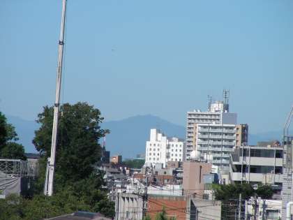 台風一過の今日は、雲一つない秋晴れです。上の写真は、屋上から見えた山の稜線です。冬には見えることがありますが、この季節にこんなにくっきり見えるのは珍しいので、紹介します。